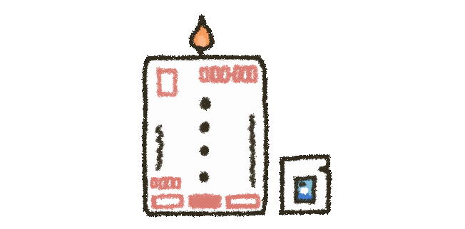 蝋燭に印刷された年賀状と切手を貼った紅茶パックのセットです。蝋燭として燃えるので、年賀状の処分が気分的に行いやすくなっています。年越しのリラックスタイムにもぴったりです。